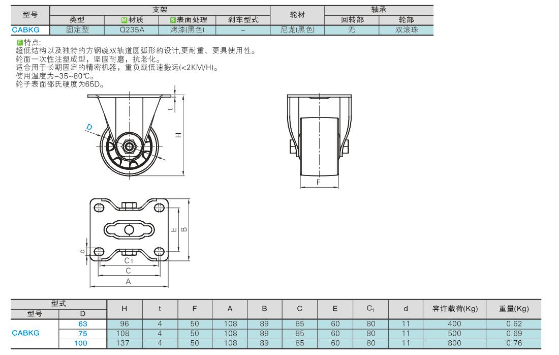 脚轮 低重心美式重载型 万向型·万向前刹型