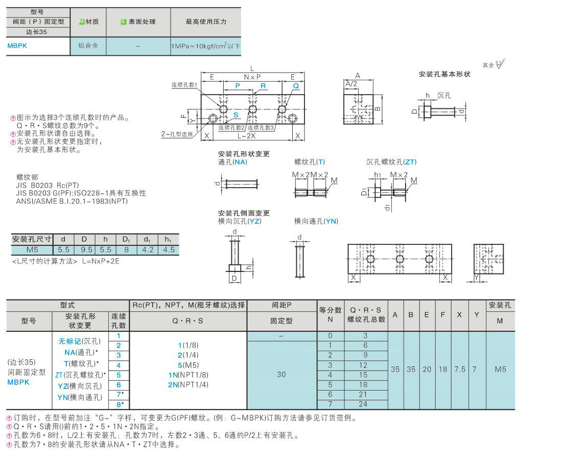 歧管块 T字孔型 气压用 间距固定型 边长35